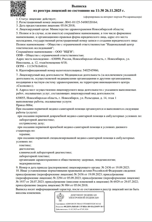 Обратите внимание: НИПТ — не является терапевтической услугой, консультацией по вопросам фармацевтики и медицинской помощью, аппаратом для диагностических целей и медицинских анализов, медицинским прибором, инструментом, аппаратурой для анализов, медицинской услугой.